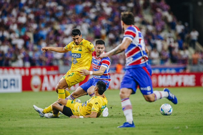 Desde el inicio, el equipo brasileño tomó la iniciativa. Con posesión, presión alta y transiciones rápidas, Fortaleza se adueñó del primer tiempo. Sin embargo, sus delanteros no lograron vulnerar al portero Aldair Quintana, figura clave del Bucaramanga.
