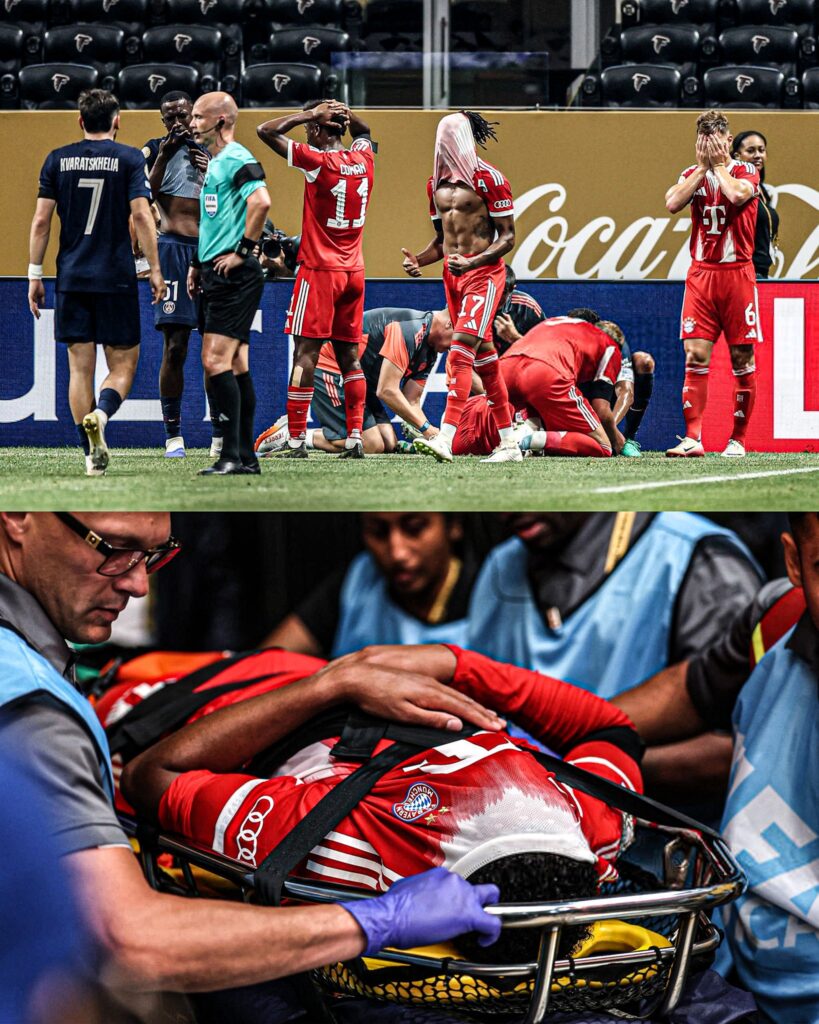 En cuestión de segundos, los médicos del Bayern y del torneo ingresaron al campo. La cara del técnico y sus compañeros lo decía todo. Algunos jugadores se tomaban la cabeza, mientras otros miraban al cielo, conmovidos por el dolor de su compañero.